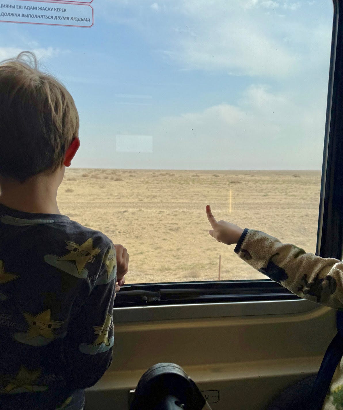 After the success of local travel, we decided to scale up. We had the opportunity to travel by overnight train in Kazakhstan and decided to go for it. We set ourselves up for success by taking a later train so that we could settle the kids in for the night and sleep for most of the journey. They woke up in time for us to enjoy a leisurely breakfast in the dining car and then watch for horses and other animals out the window until we arrived. We distracted them with the normal travel games when needed, and overall the trip was smooth, relaxed, and I loved seeing them enjoy watching the world go by as much as I did.